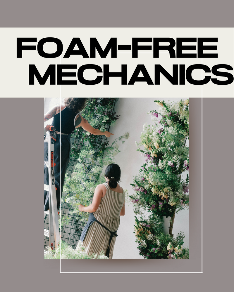 Over the years, we've created thousands of foam free designs using low waste methods and reusable solutions! And we're not the only ones innovating new ways to reduce our impact! Gain access to our Foam Free Floral Friends group chat on IG so we can share our resources and the wealth of information within our flower community!